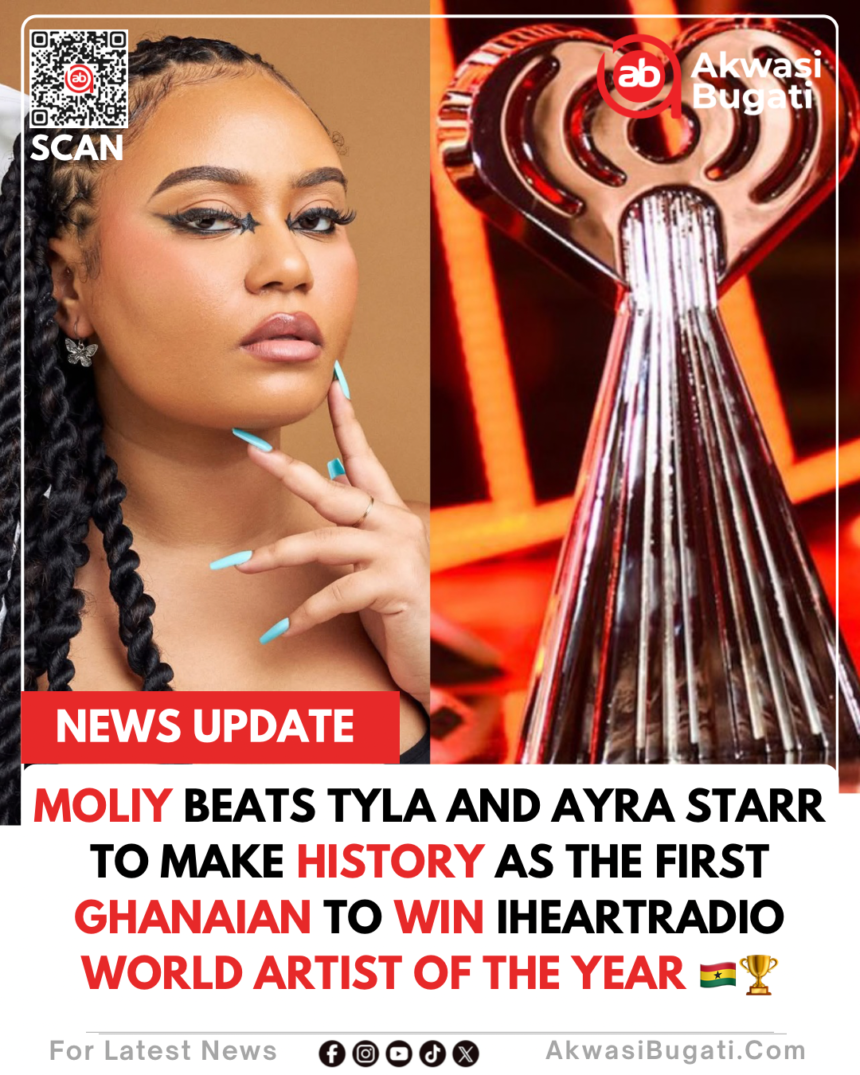 Ghanaian breakout star Moliy has etched her name in the history books after winning World Artist of the Year at the iHeartRadio Music Awards.