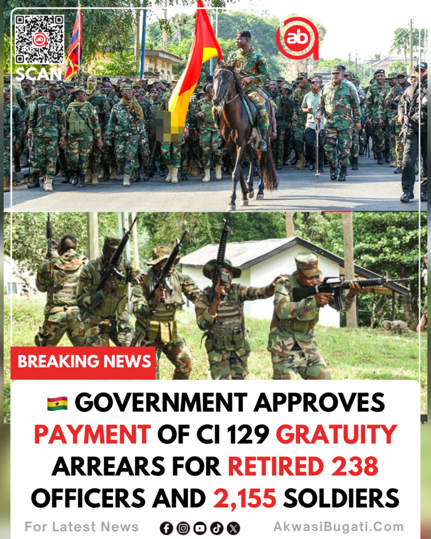 The Ghana Armed Forces has announced that government has approved the long-awaited payment of gratuity arrears under Constitutional Instrument (CI) 129 for retired military personnel.